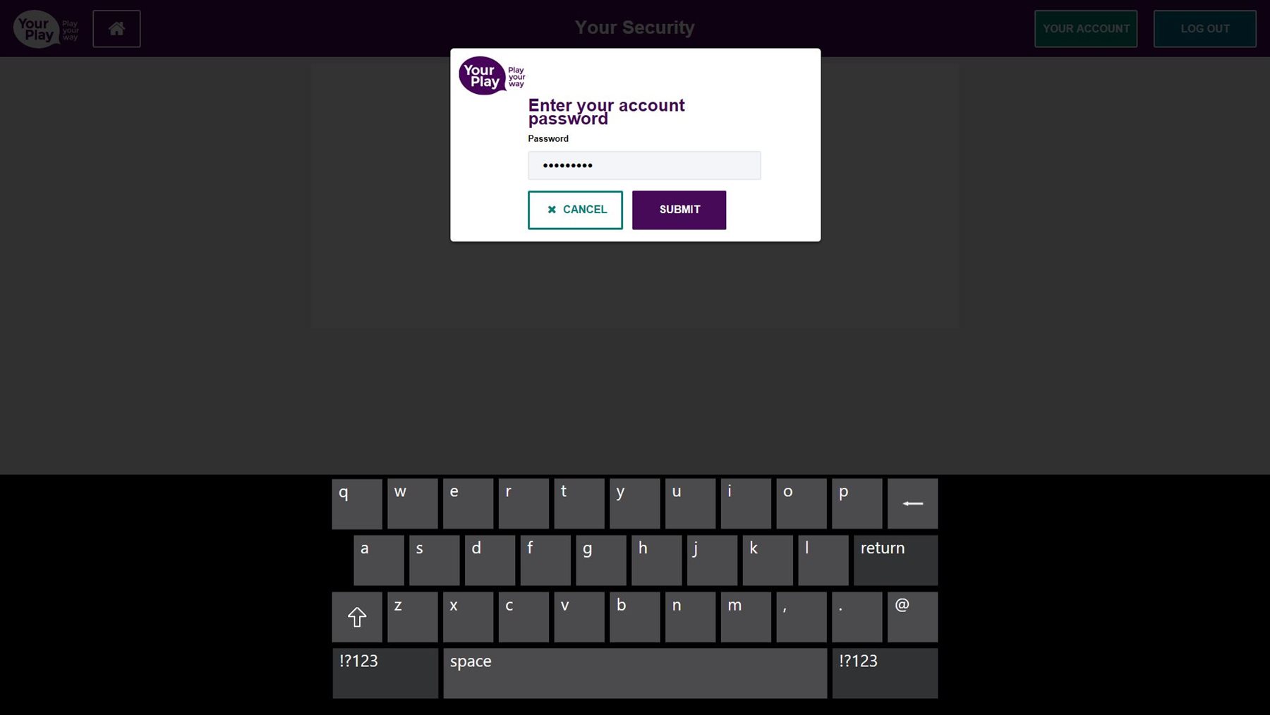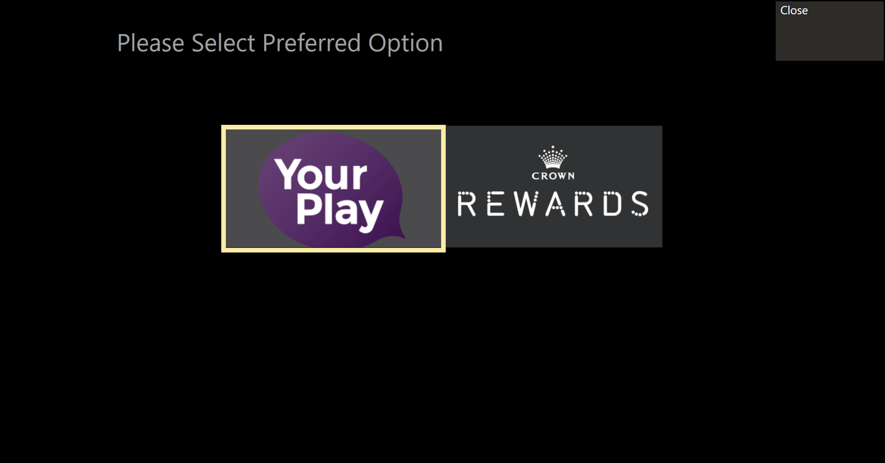 - Log into YourPlay on the kiosk using either your YourPlay username and password, or your Crown Member Card and YourPlay PIN.