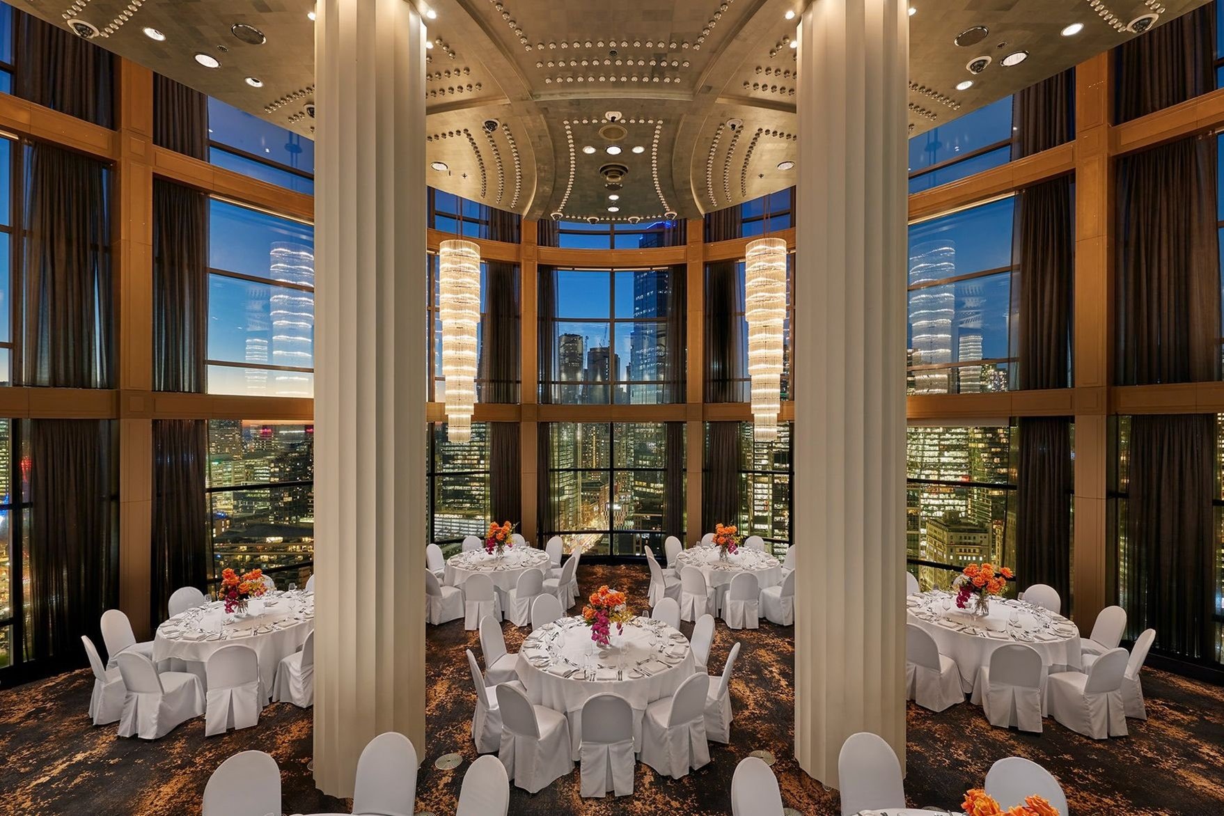 Designed to be the most sought-after, lavish venue in Melbourne, Horizon offers an elevated events experience set amid the city lights. You’re invited via private elevators into the spectacular entrance hall, adorned with golden hued timber panelling, custom furnishings, and unique artworks from Victorian based artists. From the moment you arrive at the elegant grand entrance, guests are transported to another world of unimaginable opulence with dazzling Italian crystal chandeliers and ivory-white pillars.