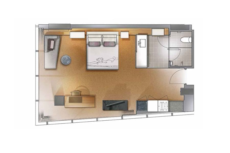 The Urban Luxe at Crown Metropol Melbourne has two full walls of windows, custom made king bed, chaise lounge, desk, fast and free internet, individual climate control, and boutique bath amenities.