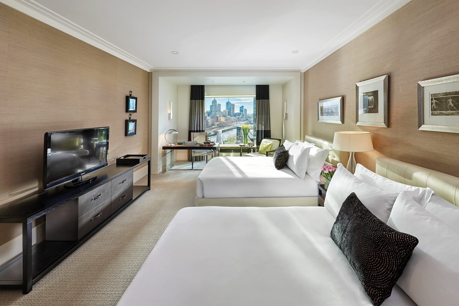 Located on level 19 to 28, Premier Twin Rooms at Crown Towers feature panoramic views of the city or bay, twin beds, a spacious bathroom with a deep soaking bath, walk in shower, dressing room, high speed internet and intuitive in-room technology including 24 hour room service and concierge.