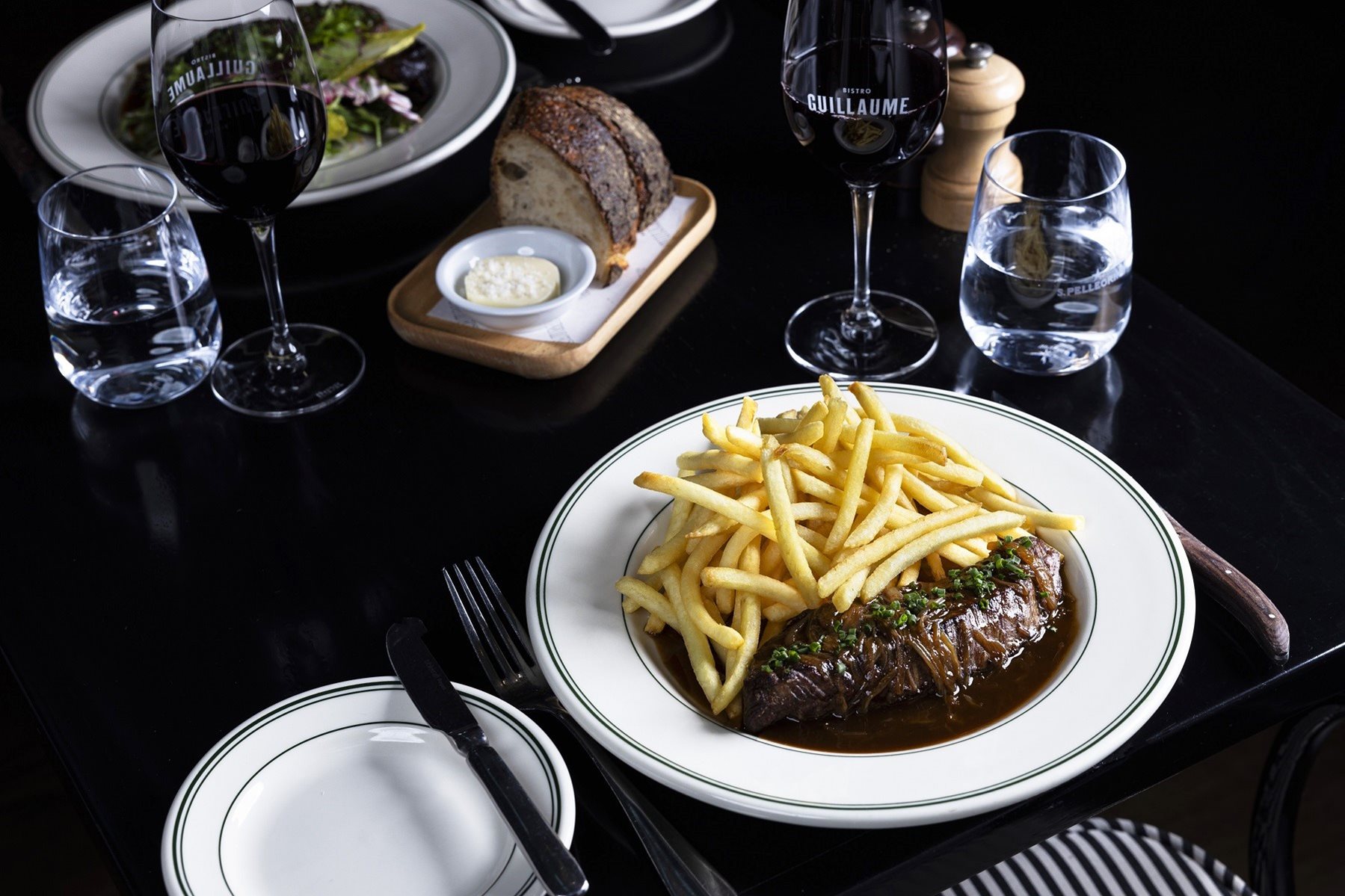 Every Monday at Bistro Guillaume, you can enjoy 200gm Bavette steak with shallot sauce, served with shoestring fries or salad for $25*.