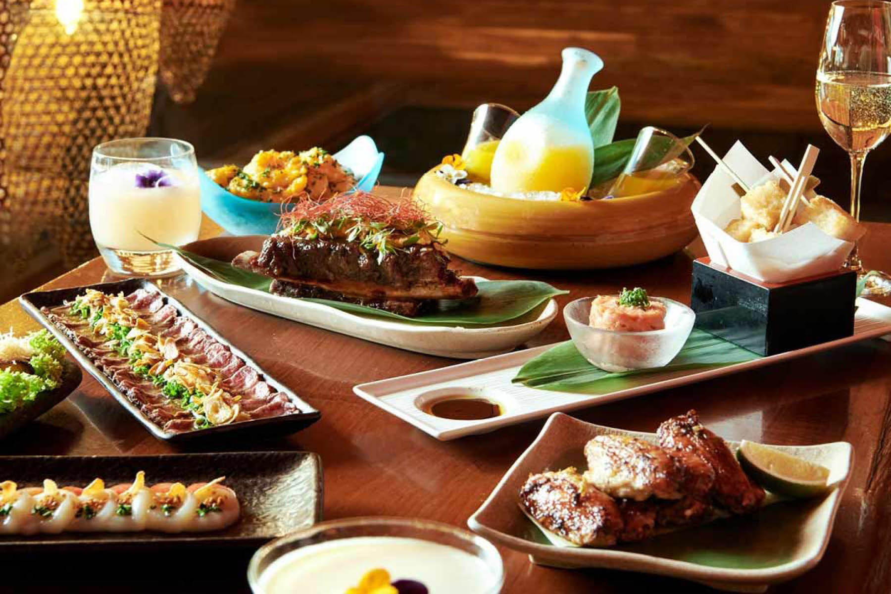 Sample the flavours that have positioned Nobu as an internationally renowned culinary destination such as yellowtail sashimi with jalapeño, wagyu tacos and Japanese scallop with dried miso. Unique cocktail infusions such as seasonal fruit sake and Yasei no Hana with Bombay Sapphire gin, Junmai sake, yuzu, vanilla and rose are a sophisticated way to refresh after a long day.