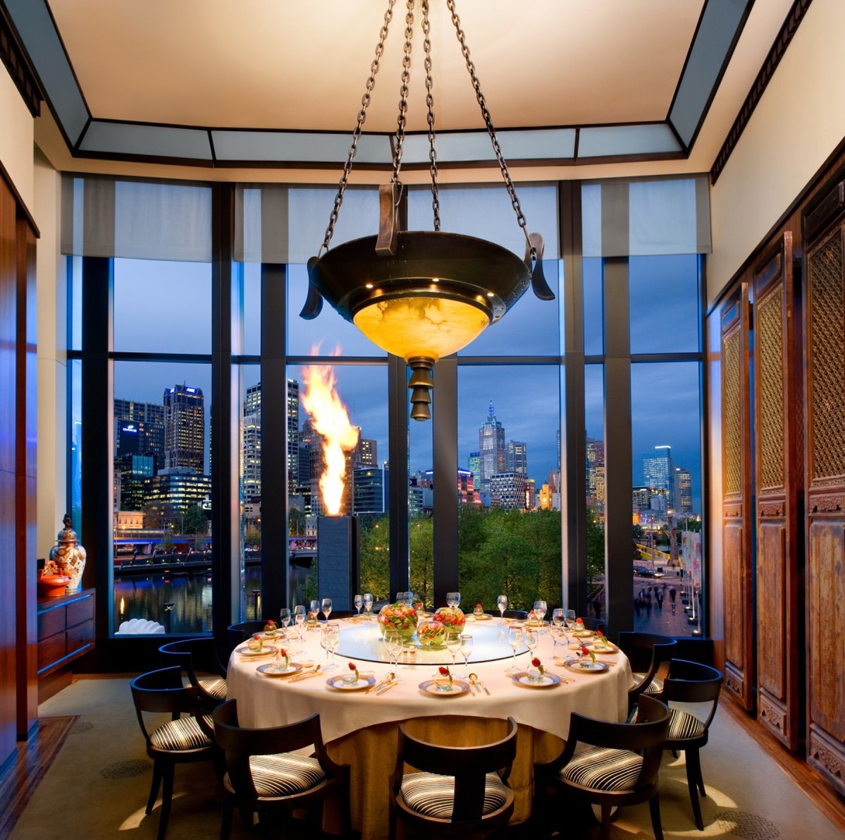 Four rooms feature Chinese-inspired tapestry and walls adorned with richly detailed woodcarvings, as well as stunning views of the Yarra River. The fifth private dining room – an impressive Mongolian tent – is the centerpiece of our private spaces, offering an intimate and unforgettable private dining experience for up to 12 people.