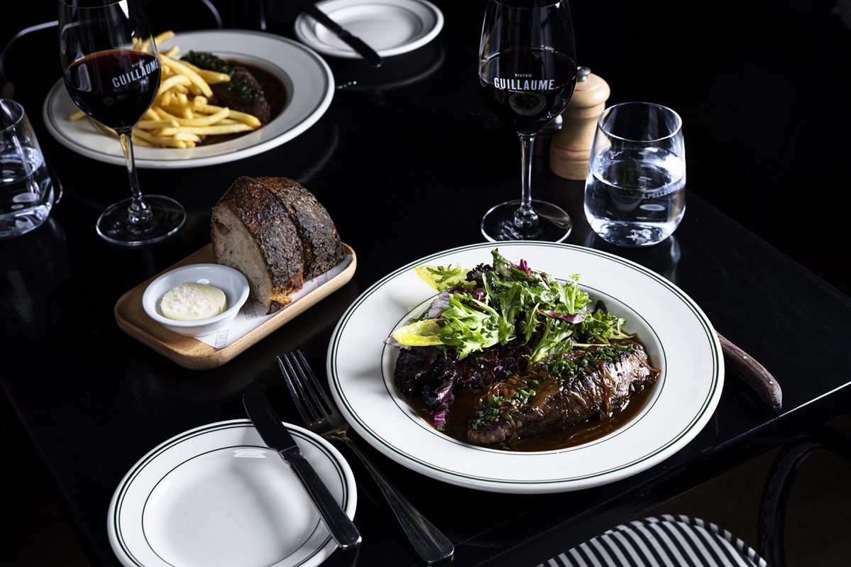 Every Monday at Bistro Guillaume, you can enjoy 200gm Bavette steak with shallot sauce, served with shoestring fries or salad for $25*.