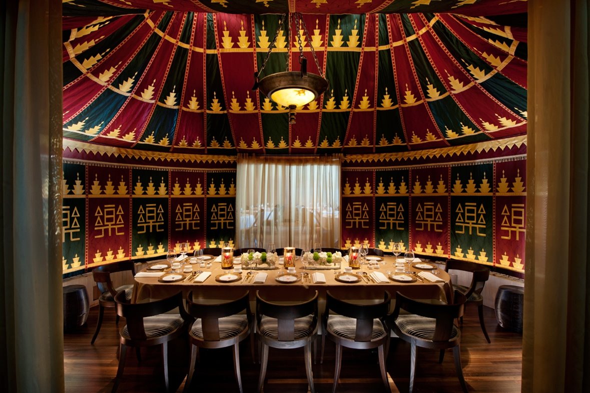 Five impeccable private dining rooms accommodate up to 12 guests in Silks signature Chinese grandeur.